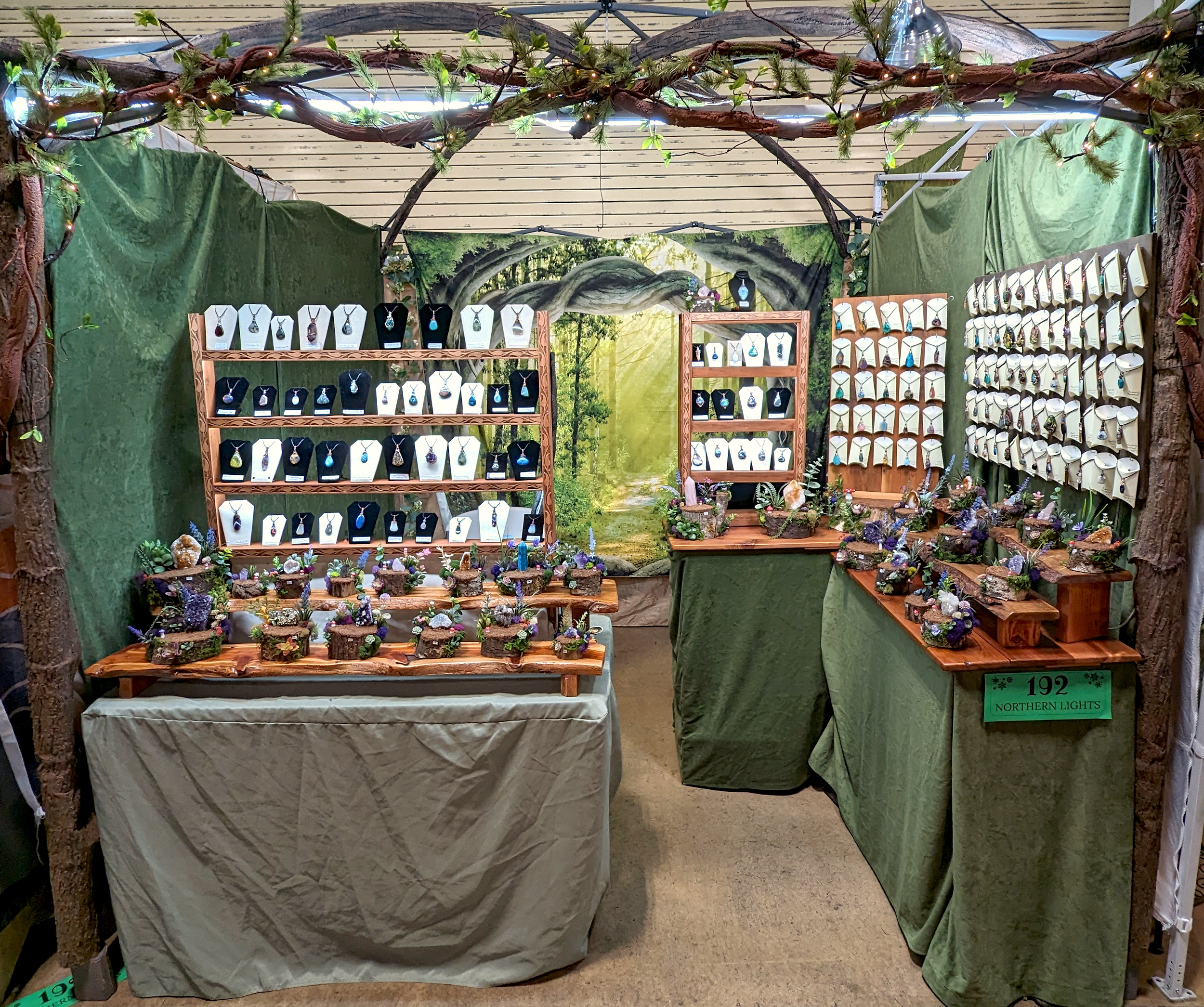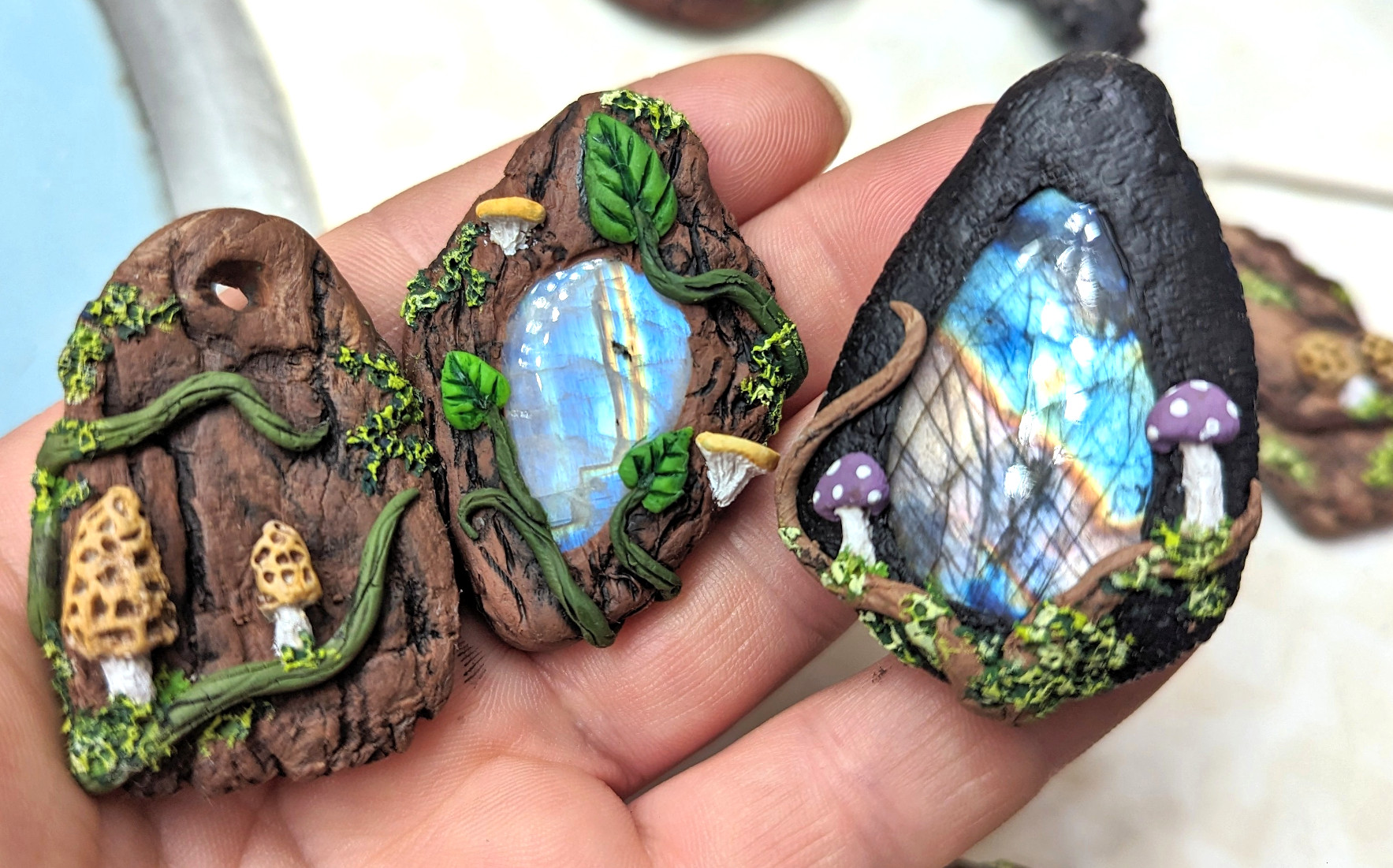 Addicted2Crystals also makes whimsical Fairy Gardens with crystals, moss and mushrooms set into natural wood and log pieces,
