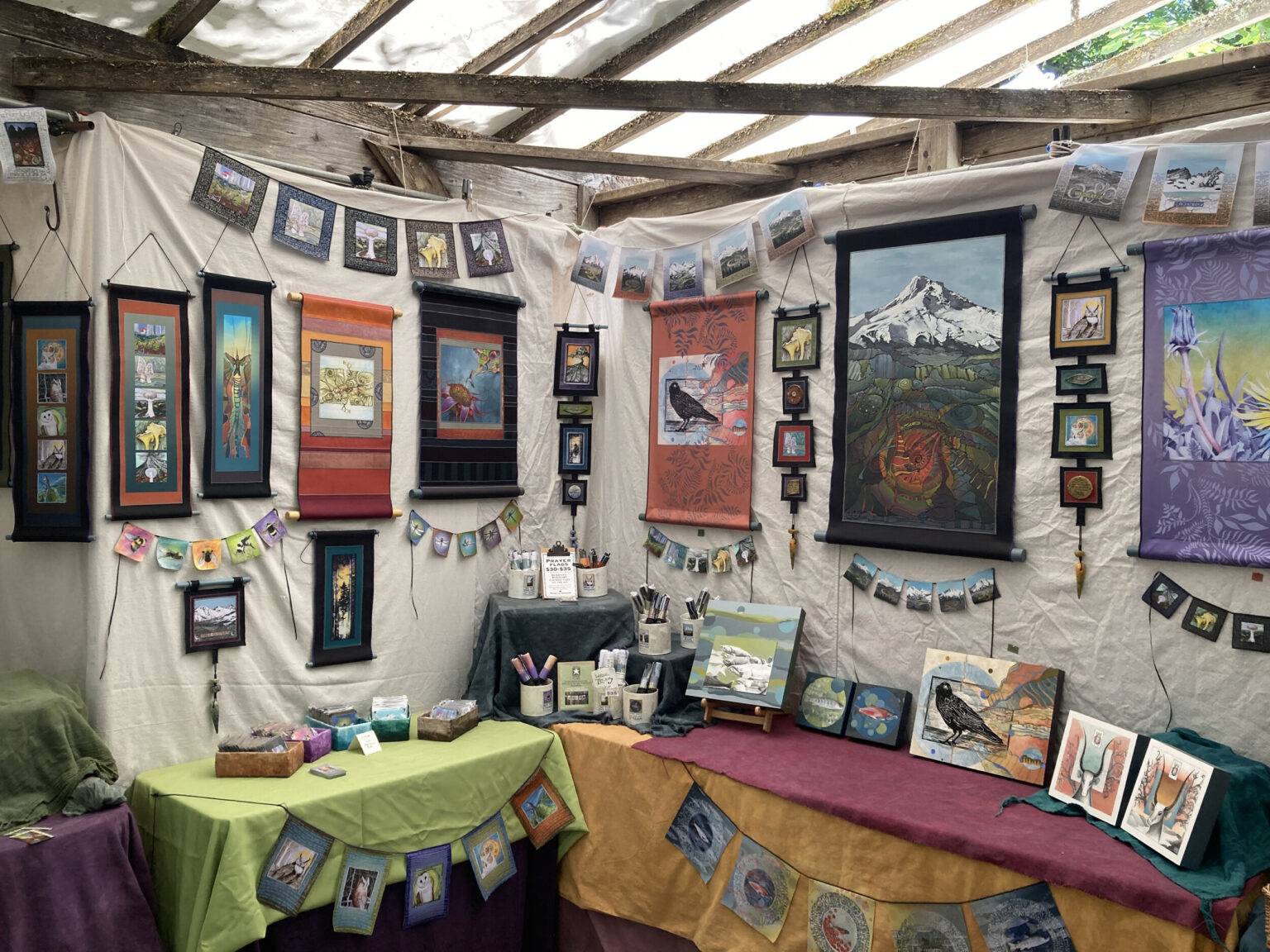Cada Johnson makes slow tech, joy intensive artwork for bodies and walls. She believes wholeheartedly in the direct experience of artist to customer; her hands to your hands. She strives for a low impact, socially and environmentally responsible business, producing clothing and art for the home that is ethically produced. Cada paints and draws artwork inspired by the natural world, then she transfers those images onto fabric and uses the printed fabric to make wall hangings, flags, and embellished up-cycled clothing.