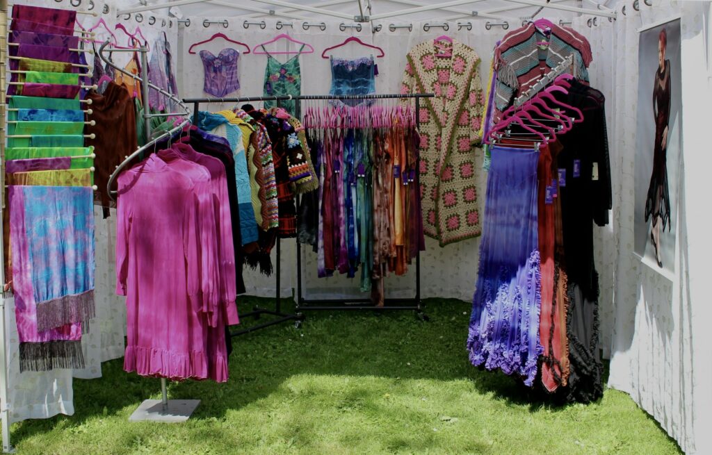 I create one of a kind garments made from upcycled and new materials. I use vintage Afghan blankets for my knitwear line that I hand draft every pattern and each piece is individually crafted based on the unique blankets I source. My Mesh-wear line is all made from my own designs and handmade by me every design is original and inspired by vintage clothing. I also have an upcycled line of vintage slips and lingerie that are hand dyed using a shibori technique with lace applique embellishments.
