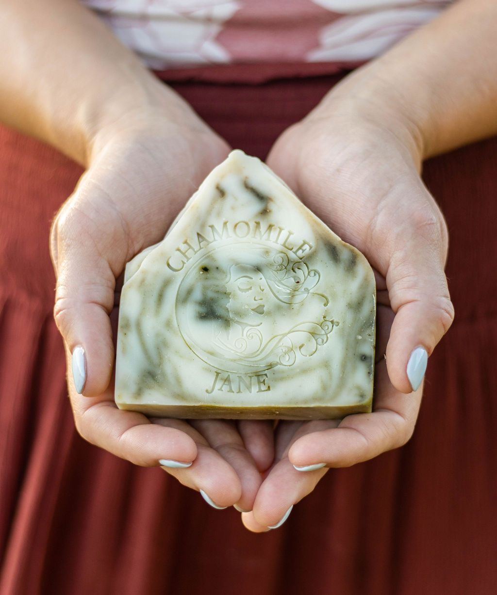 Chamomile Jane soap bars deliver a rich, creamy lather and a clean rinse that doesn’t leave skin feeling tight or stripped of natural oils. As one happy customer put it, “This is the best soap I have ever used! I don’t even have to put on moisturizer after, and I smell so good!”