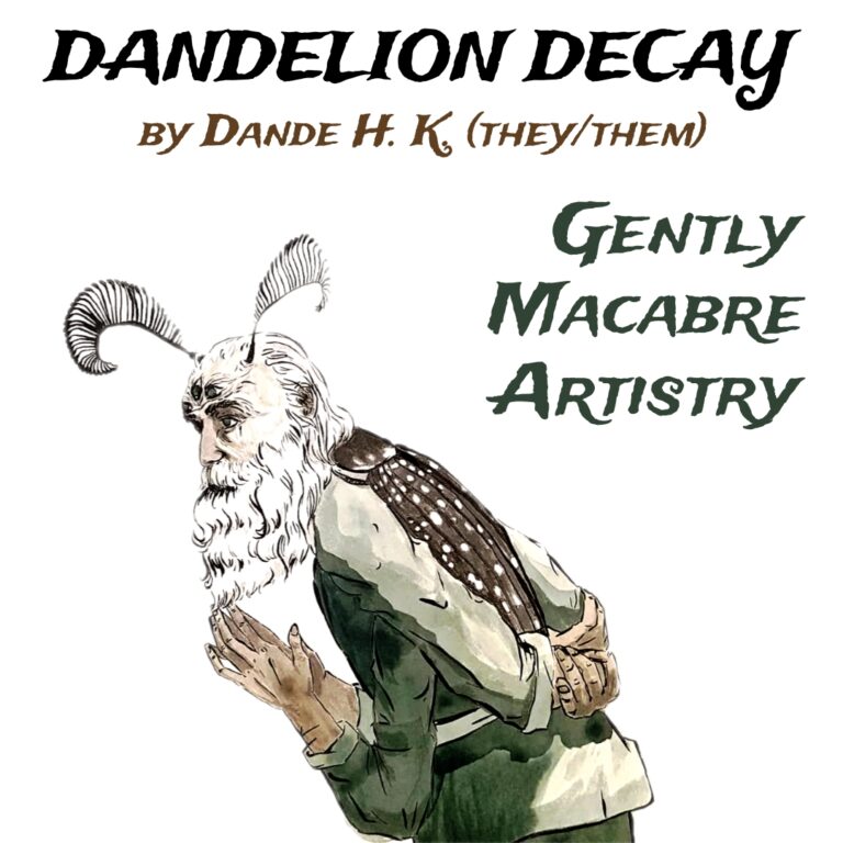 For art exploring a mix of the natural world and a fantastical one, visit the booth of Dandelion Decay. The artist, Dande, combines wistfulness and structure through a variety of painting, drawing, and printmaking skills. Dande is thrilled to share their art in several forms such as prints, card decks, and zines. From beetle fairies to hare-hens, from twisted oaks to silent seas, you’re sure to find something that strikes your fancy in the art of Dandelion Decay.