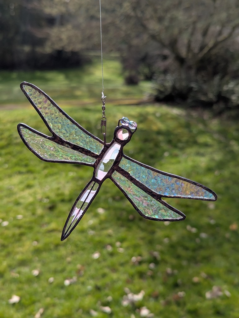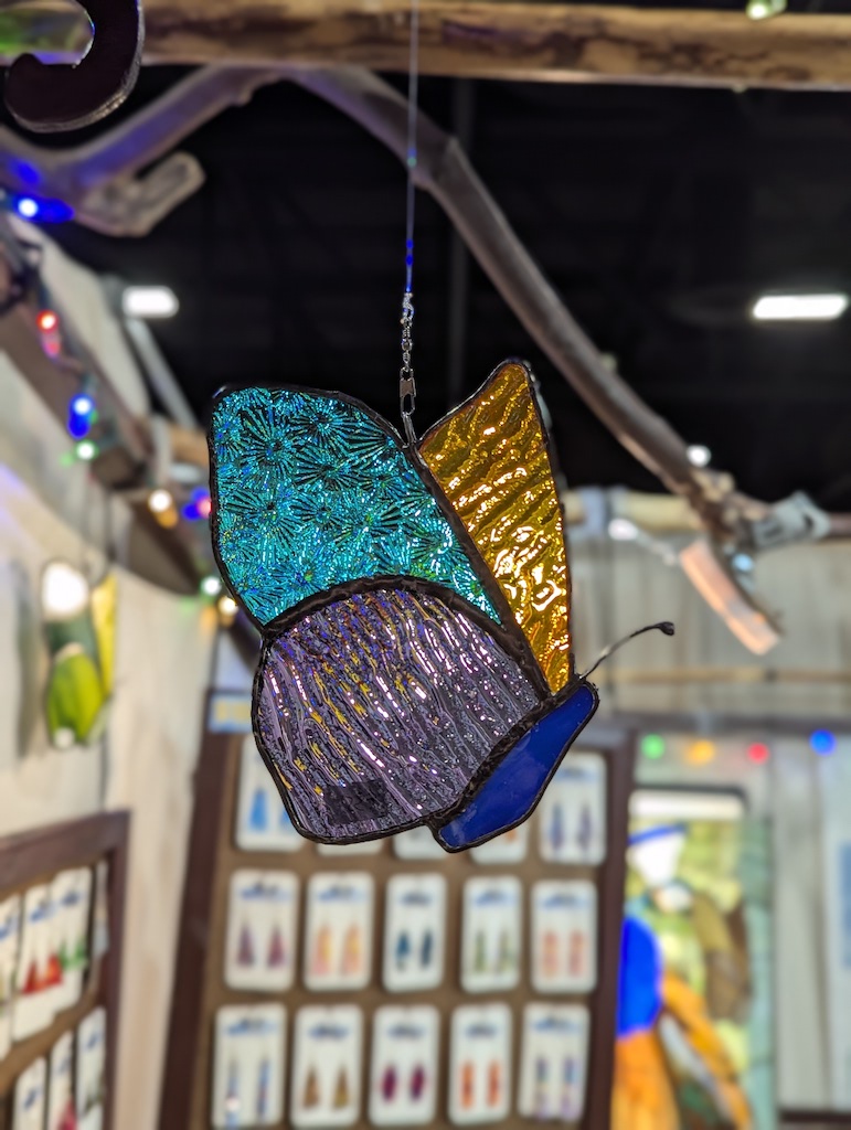 Davocreates also makes stained glass windows and sun catchers using the copper foil method. I also patina the solder making the lines in my pieces dark so the colored glass really stands out. Like my earrings, each sun catcher and window are all different making for a one of kind piece of art or perfect gift for anyone.