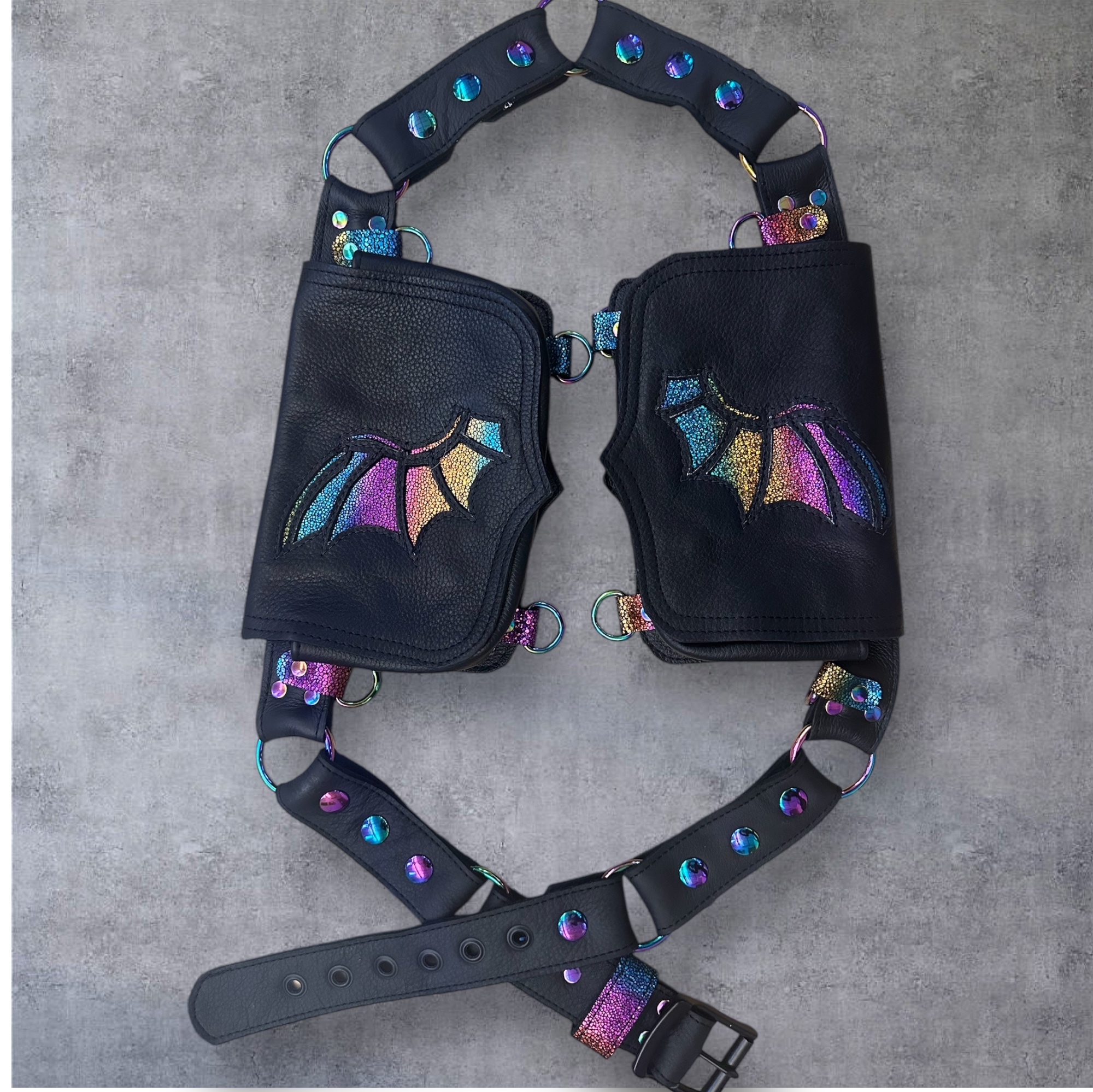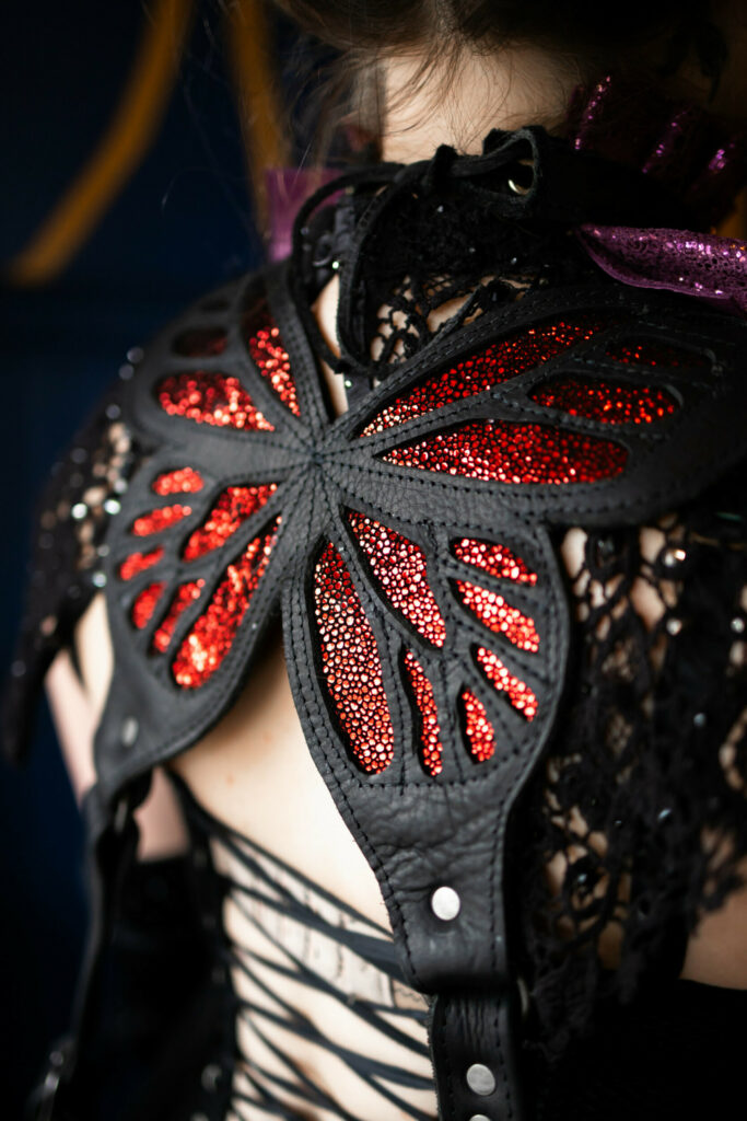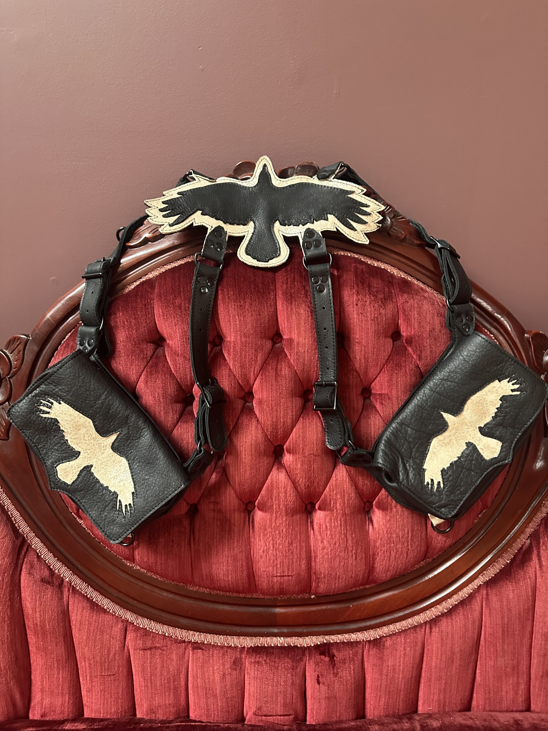 All products are handcrafted designs for functional and unique works of wearable leather art. Dreamtender Leather specializes in harnesses, parasol and tea cup holsters, belt bags, shoulder holsters, and more unique accessories you never knew you needed. DTL is famous for crafting functional almost mundane items with an extraordinary twist. All accessories carry with them an aura of whimsy and curiosity. This season, Dreamtender Leather is embracing the weird, and wondrous with designs from anatomical hearts, arachnids, corvids, creatures that have walked the earth, and many that dwell in our dreams. Our designs experiment with incorporating function and utility with a fine art multi media flair using negative space, applique techniques and texture to weave stories of lore, mystery and intrigue into her designs.