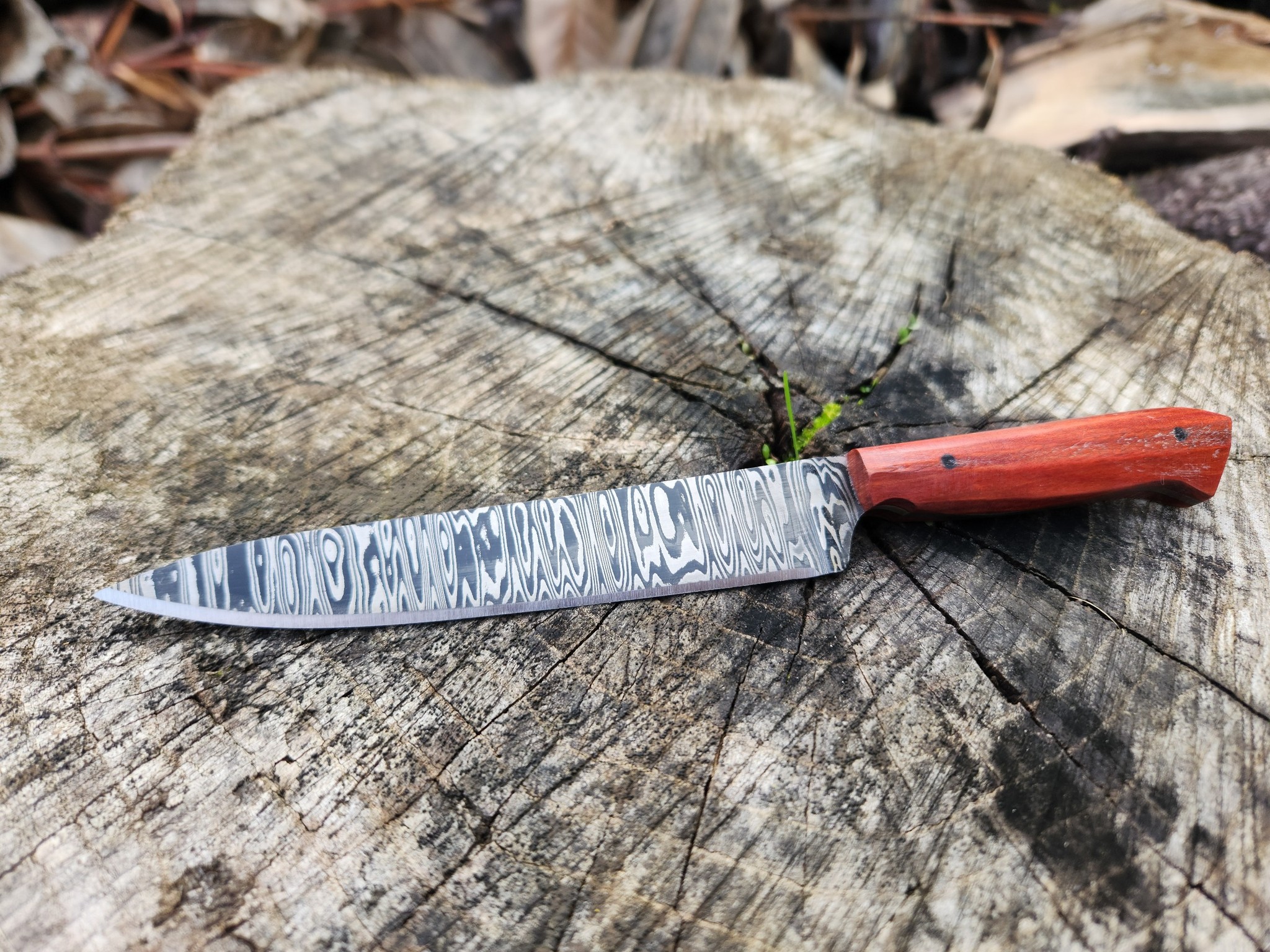 At Feline Forge, we specialize in crafting premium, custom Damascus knives for collectors, hunters, outdoor enthusiasts, and gardeners. Each blade made by Feline Forge is a unique work of art, exceptional durability, and precision bevels tailored to your needs.