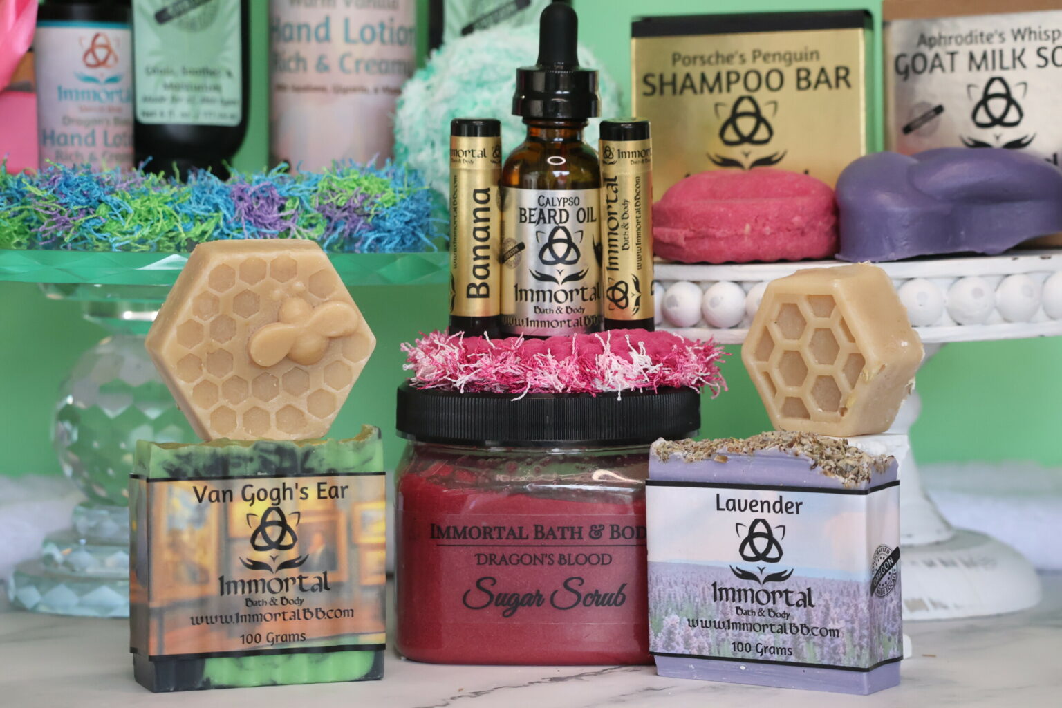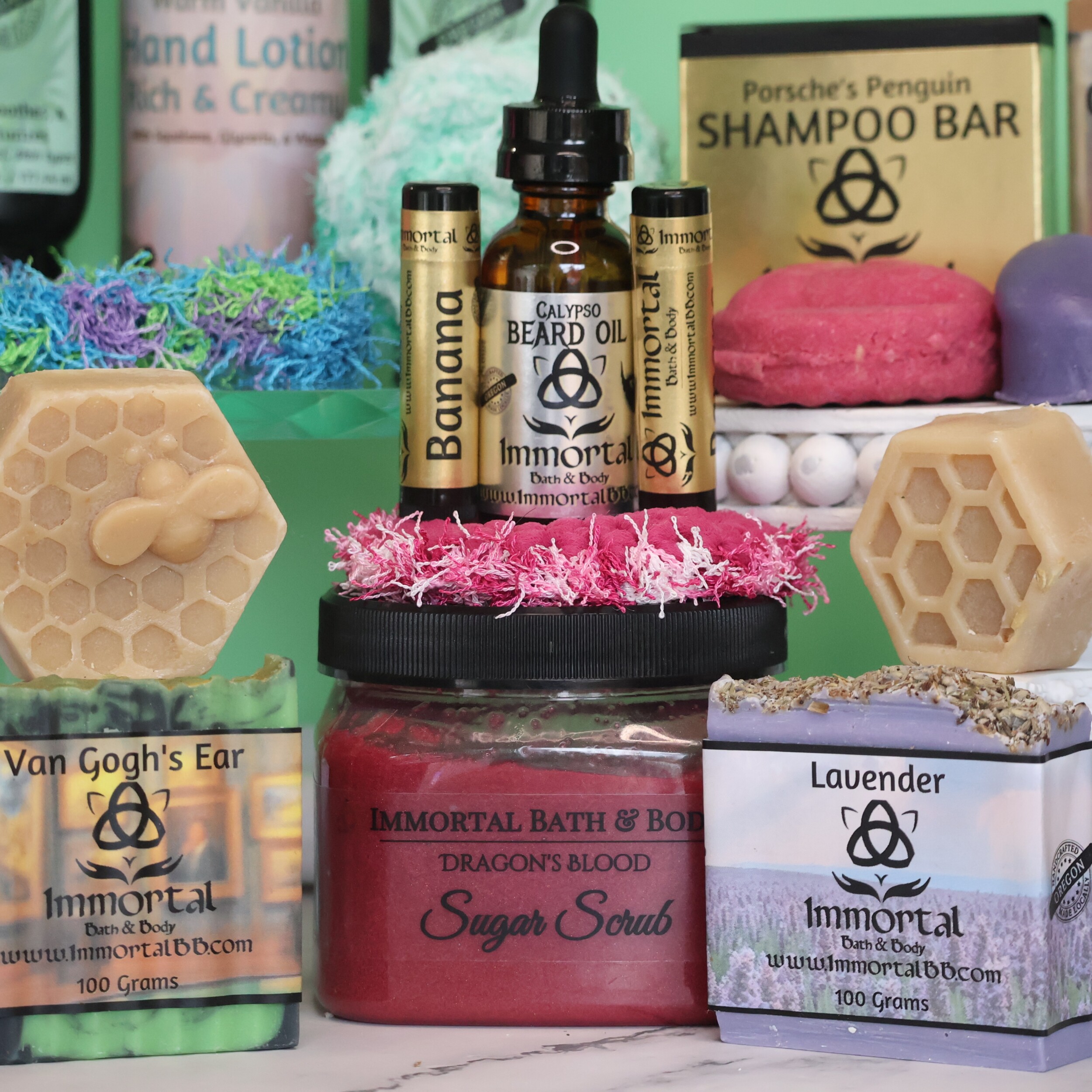 Immortal Bath & Body strives to develop and create high-quality, luxurious body care products. From soothing soaps to nourishing shampoobars to hydrating lip balms, we’ve got your skincare needs covered. Elevate your skincare with Immortal Bath & Body – where beauty never fades, and luxury is within reach.