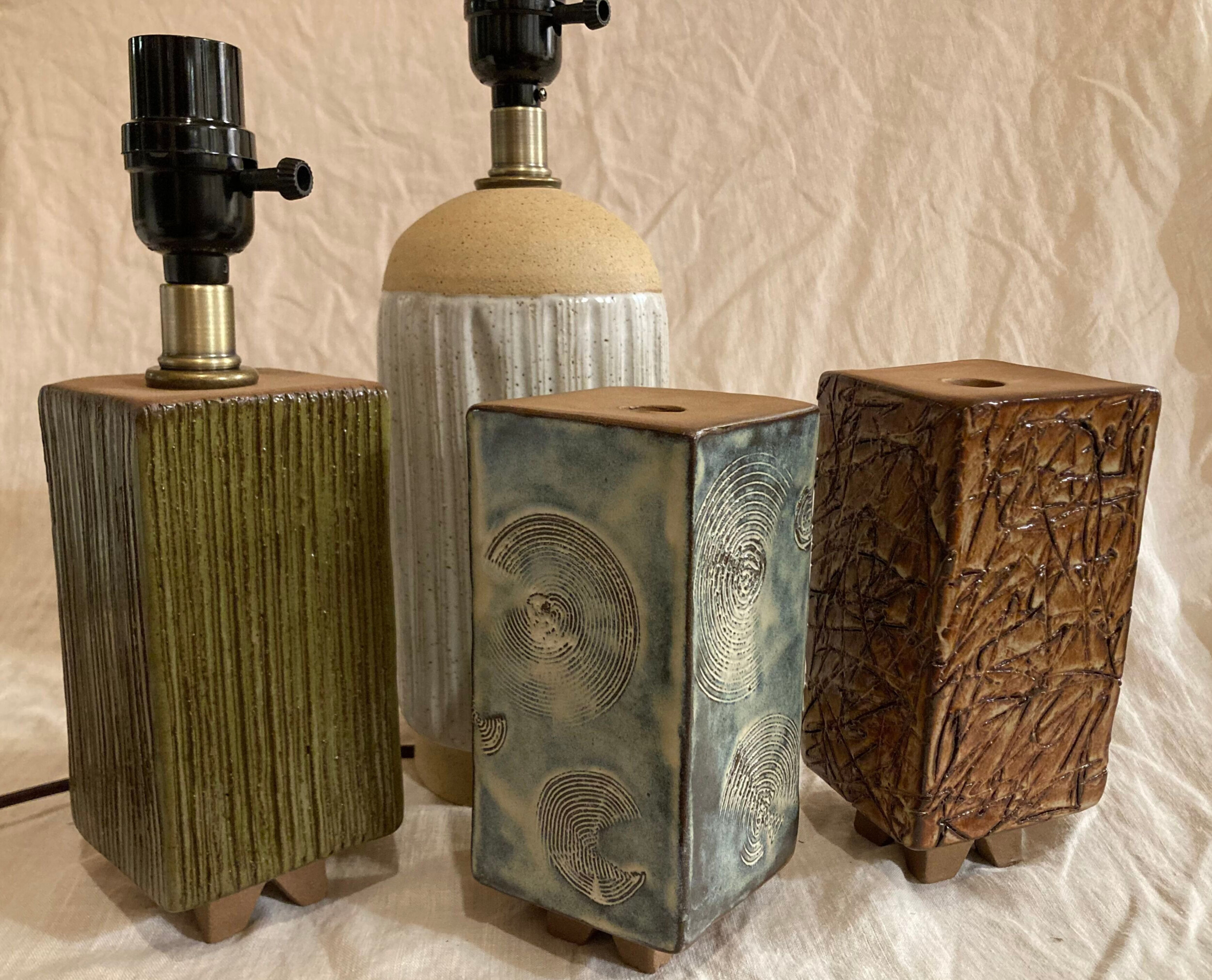 Individual pieces, such as lamps or small dishes, easily stand alone or coordinate into pairs or sets. Ker Cleary Art pieces, while well-made and sturdy, reside comfortably in the broad, familiar ground between overly tidy and mildly disheveled.