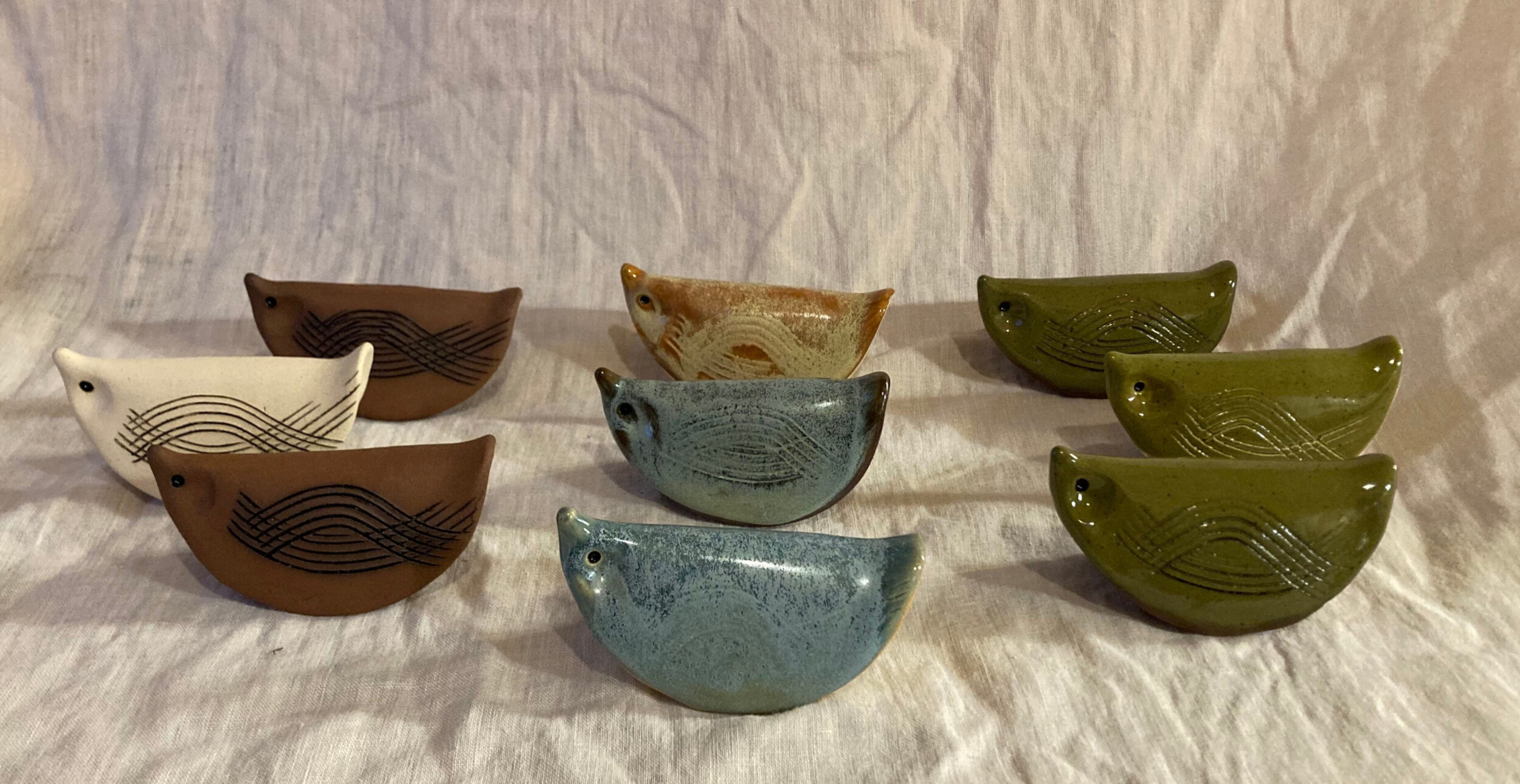 Ker Cleary Art offers distinctive hand-built clay lamps, birds, small dishes, flower bricks, and other useful pieces. My original designs and whimsical approach to clay will brighten your home or office, and bring cheer to your friends, clients, and family.