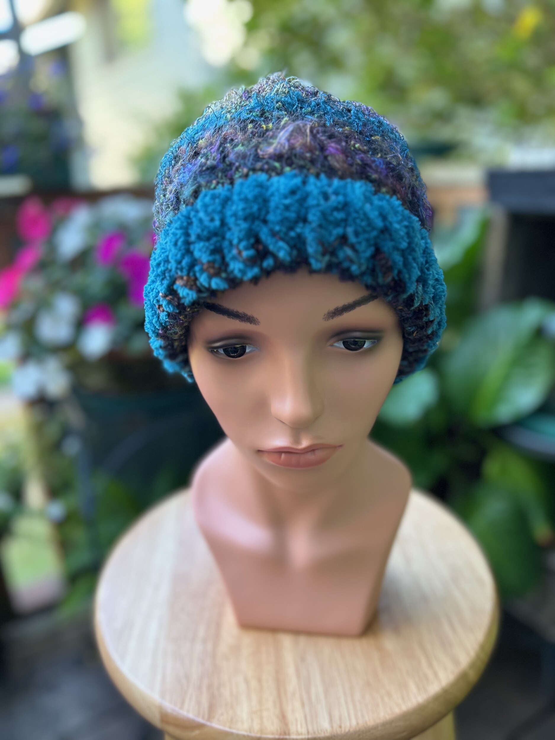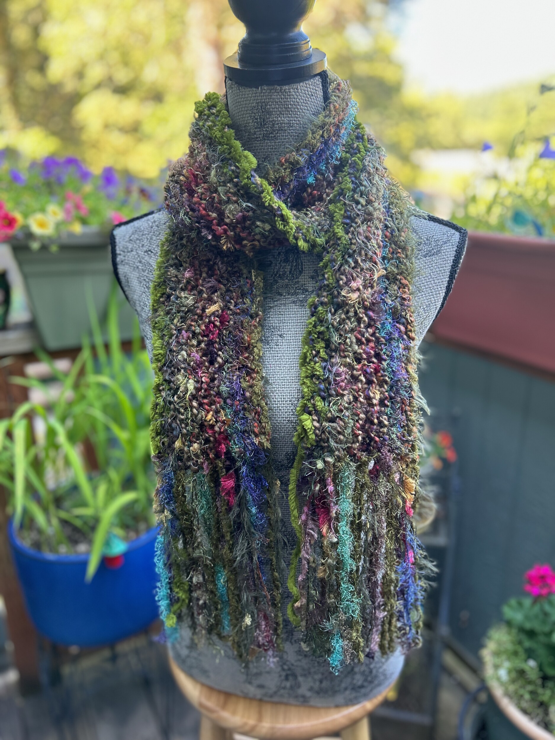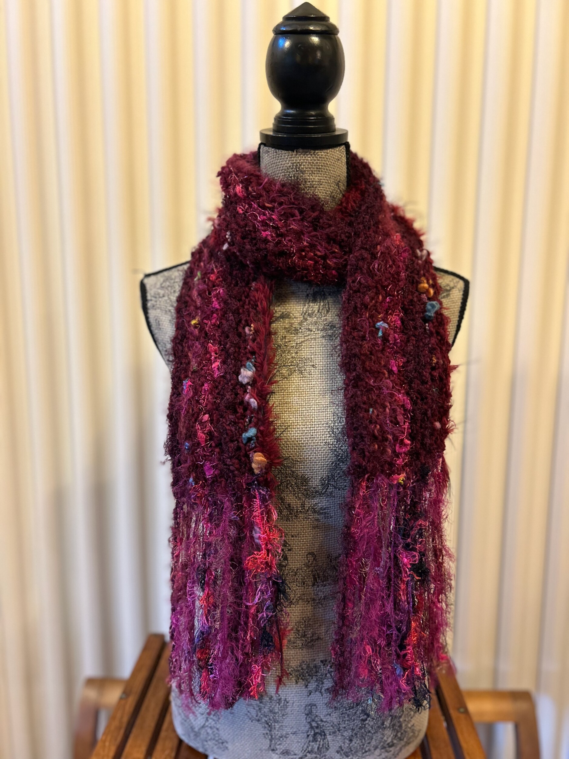 Knitwits’ scarves, hats and ponchos are all handmade from an exciting combination of yarns and threads, the variety of which has come a long way since the “old days,” when Grandmother sat in her rocking chair making thick, scratchy, heavy woollens in questionable colors!