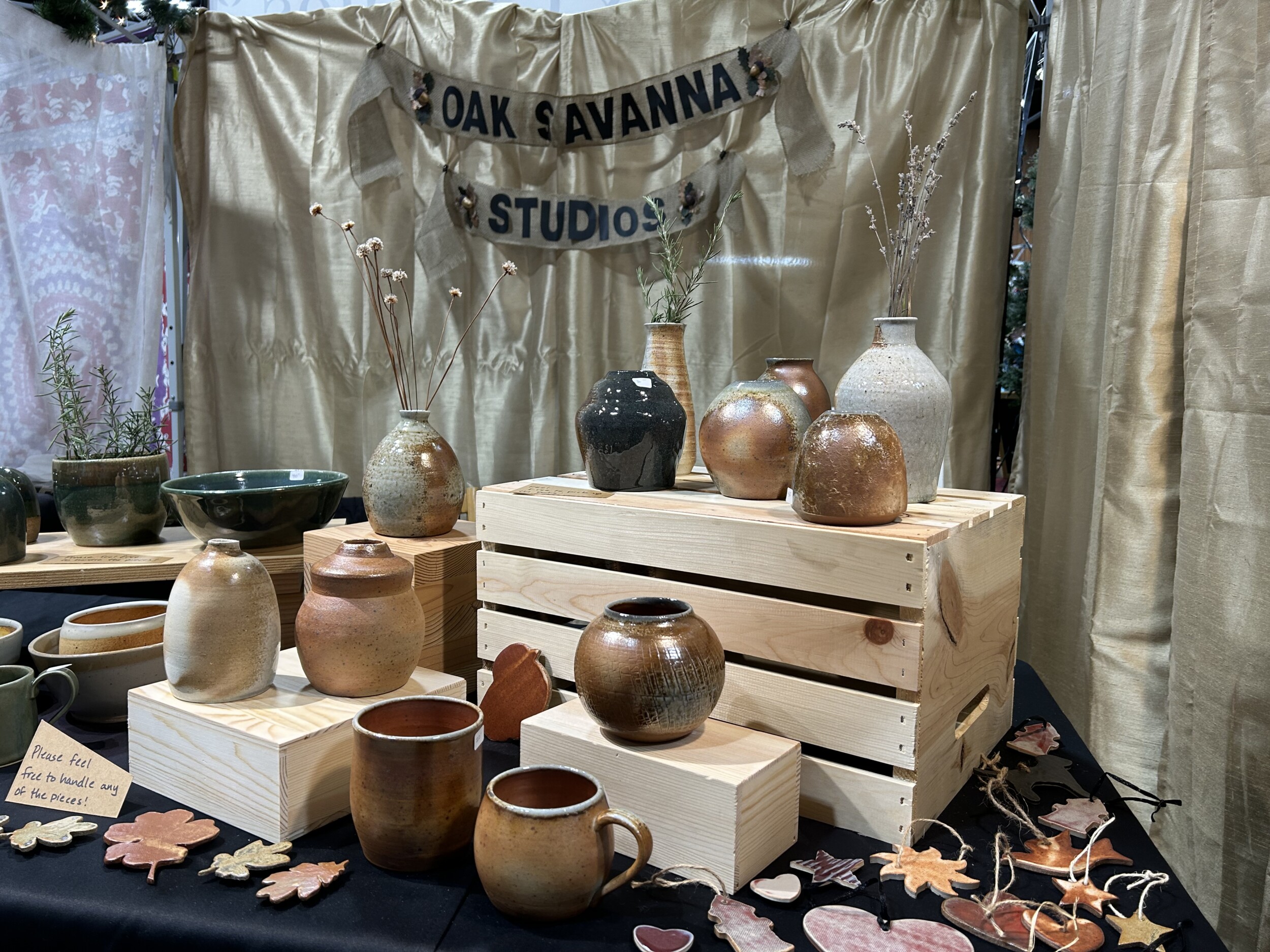 functional and decorative pottery, incorporating colors and imagery from Pacific Northwest landscapes. All high fired (including some wood fired) pieces, making them food safe and durable. Pieces include bowls of various sizes, mugs, planters, vases, small trays, ornaments, magnets, and tiny spoons!