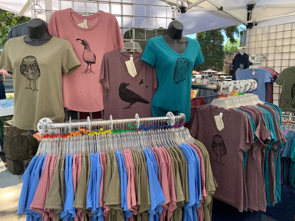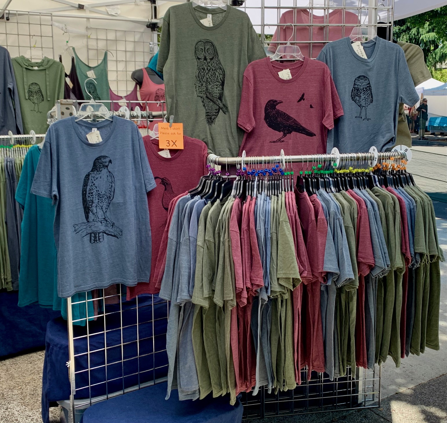 Detailed, hand-drawn illustrations of West Coast birds, hand printed on high-quality shirts.