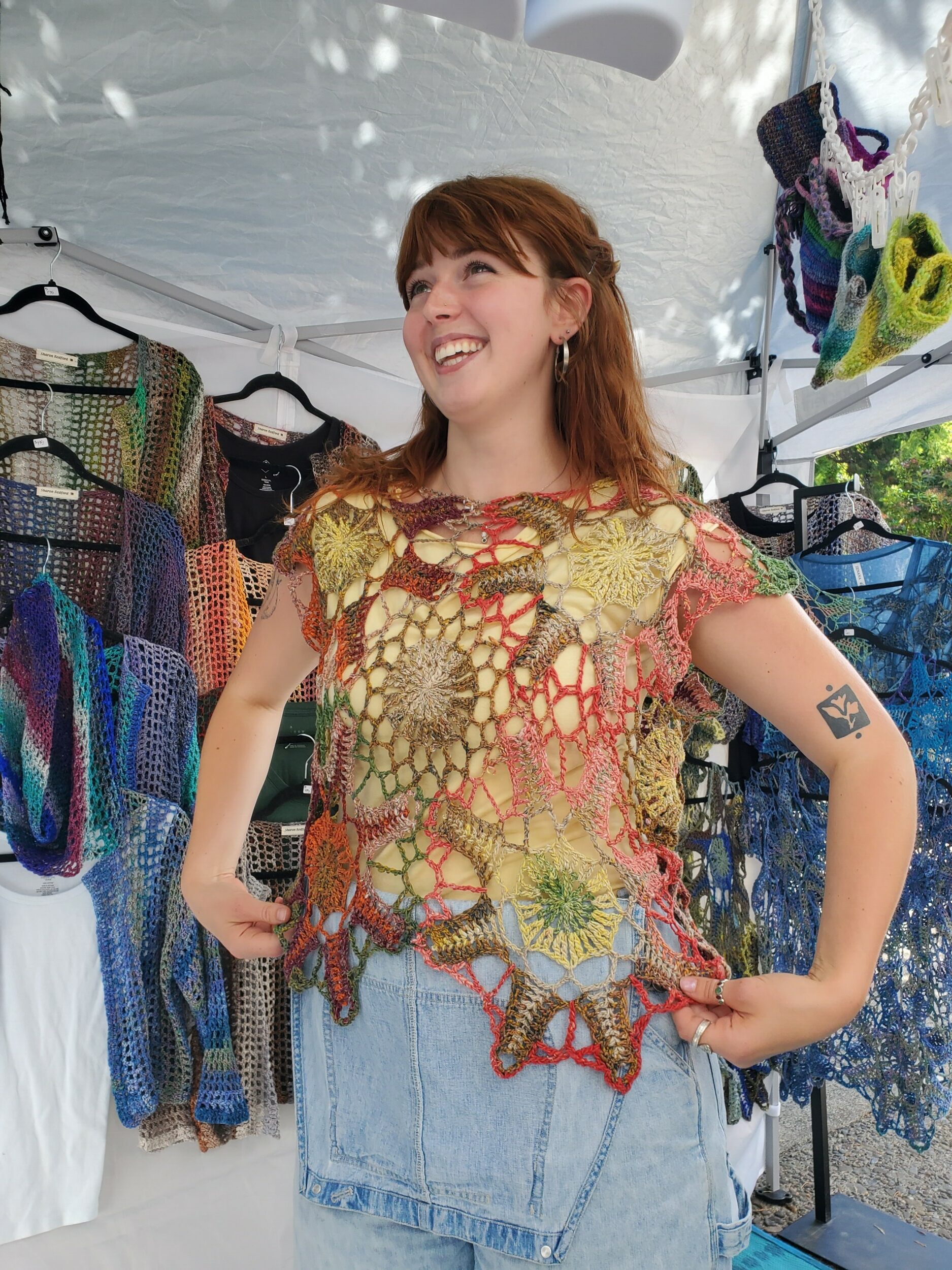 Luxurious silk blend accessories perfect for gifting that someone or treating yourself to warmth and style. Sharon Bedford Designs offers colorful basket design beret hats or slouchy ribbed beanies with “matching” fingerless mitts. Painterly luxury yarns in crochet lace offer long or short vest designs or pullover tunics to enhance your wardrobe for a great boho flirty style. Artful color silk blends in neck scarves and shawls for adding sophisticated style. No scratchy stuff here!