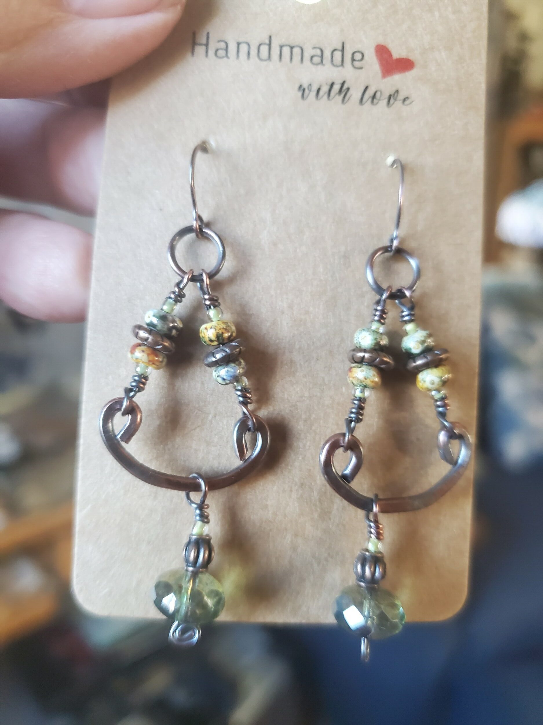 Something new this year, Sharon Bedford Designs makes original jewelry designs using copper, ribbons, beads and gemstones. My copper and bead wrap pendants, earrings and rings are stylish fun without the cost of gold and silver. I feature natural gemstones, glass beads and have collected vintage and culturally diverse treasures from around the world to feature in my original designs. I also like to feature music themed shapes like guitars and treble clefs. Challenge me with your favorite shape! Come see me at The Holiday Market in booth 290 on Wizard Way.