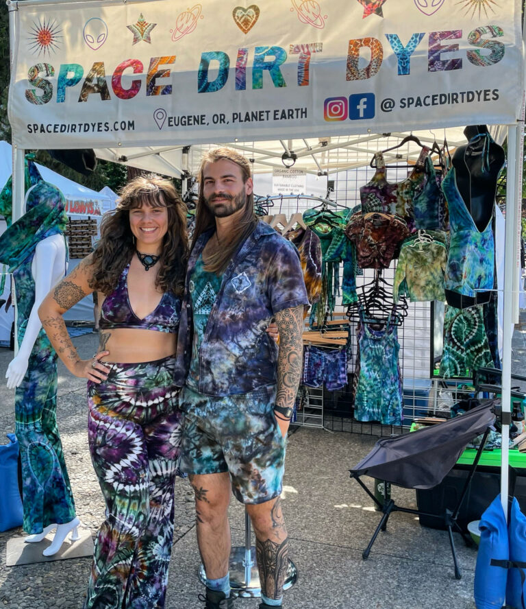 Everything in our shop is hand tied and dyed by us (Elijah Simonfy and Paige Burns) in Eugene, Oregon. We are partners in love, life and tie dye!