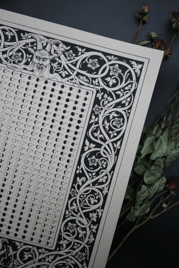 Natural Clothing incl. Oeko-Tex Certified European Linen, Screenprinted Moon Phase Calendars, Leather Accessories, Sacred Oils, Floral Adornments.