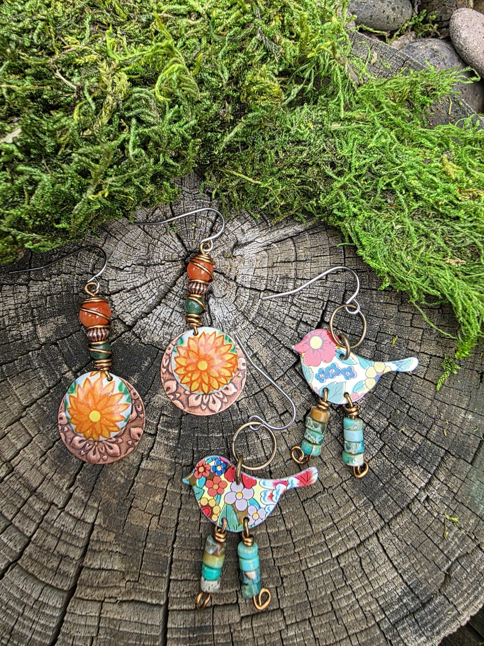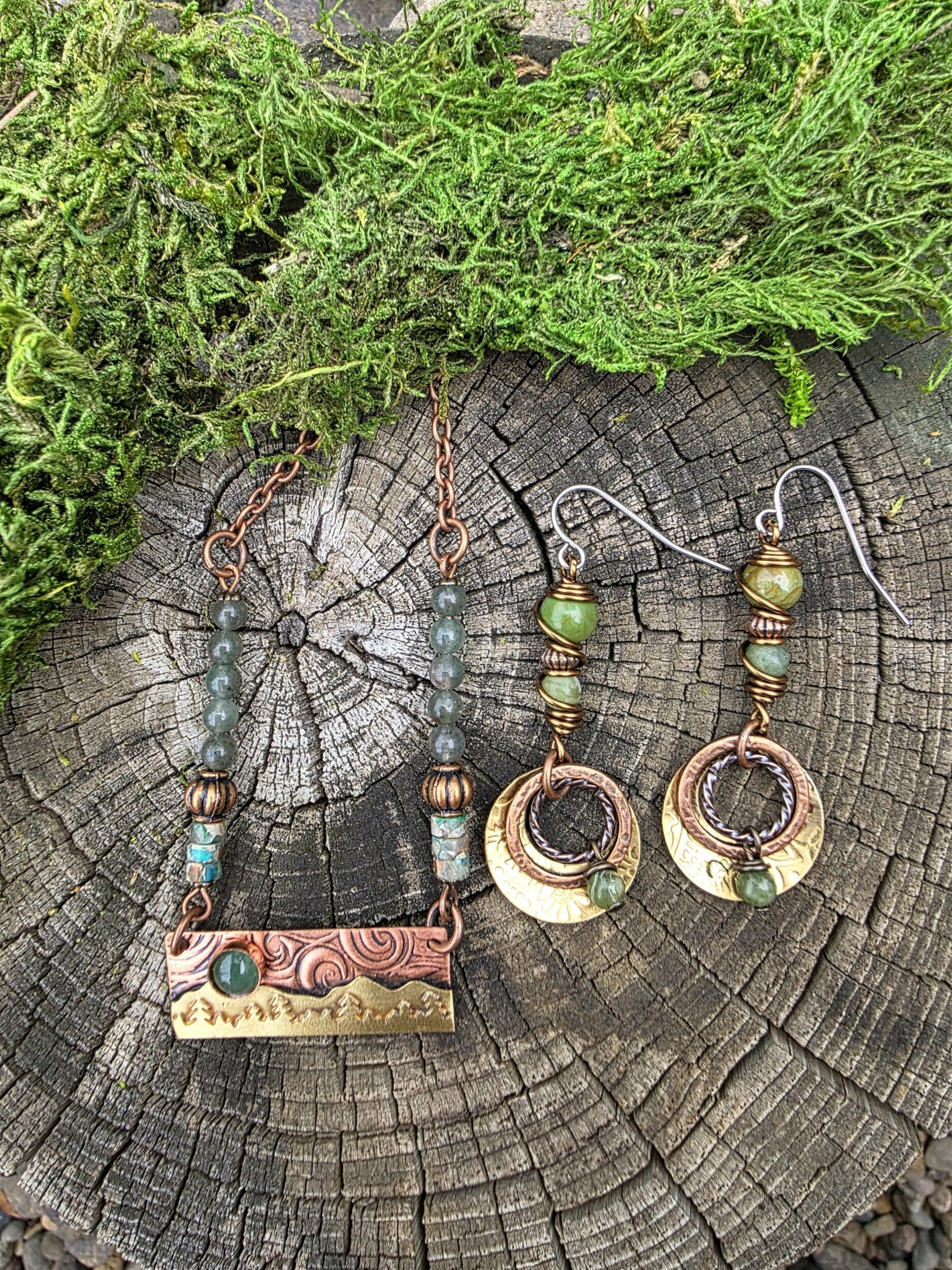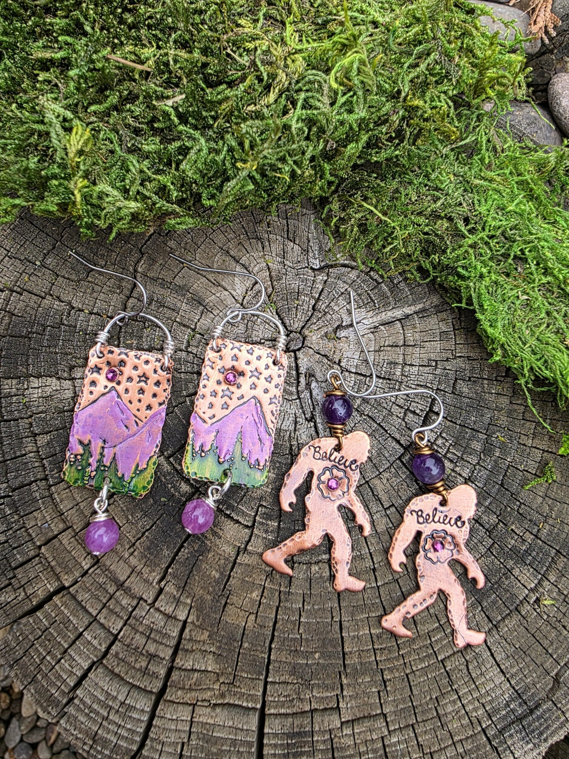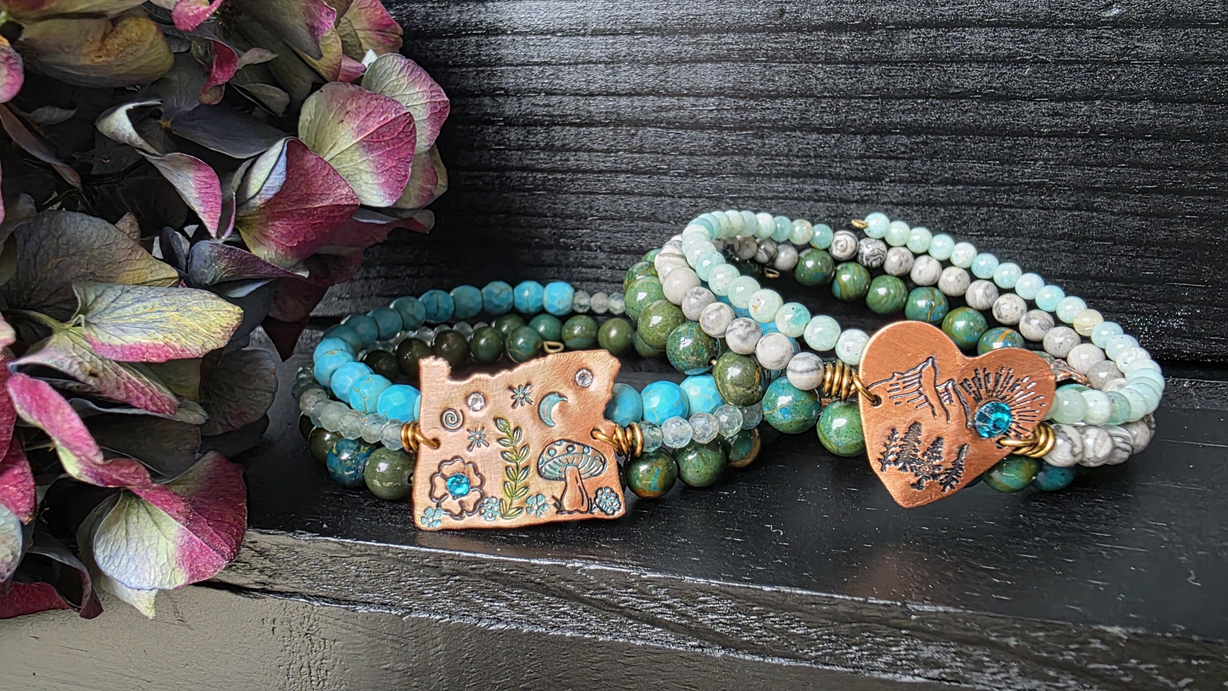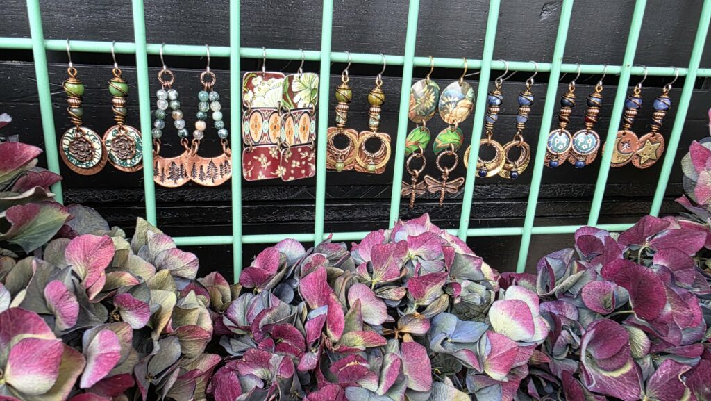 I began my creative journey in the 90s designing Christmas ornaments. Over time, my work has evolved, and for the past twelve years I have focused on jewelry. Much of my inspiration comes from the natural beauty of our state. I’m also influenced by vintage jewelry and a boho aesthetic. These influences merge to form my own unique style: earthy yet refined, nostalgic yet fresh. Much of my jewelry is created from materials that have already lived full and varied lives. Recycled metals, vintage tins, natural elements, and gemstones are transformed into something new. I feel as though I am giving them a renewed sense of purpose, allowing their histories to shine through but also telling a beautiful new story. The goal of my work is to bring elegance, whimsy, and joy… because life is too short to wear boring jewelry!