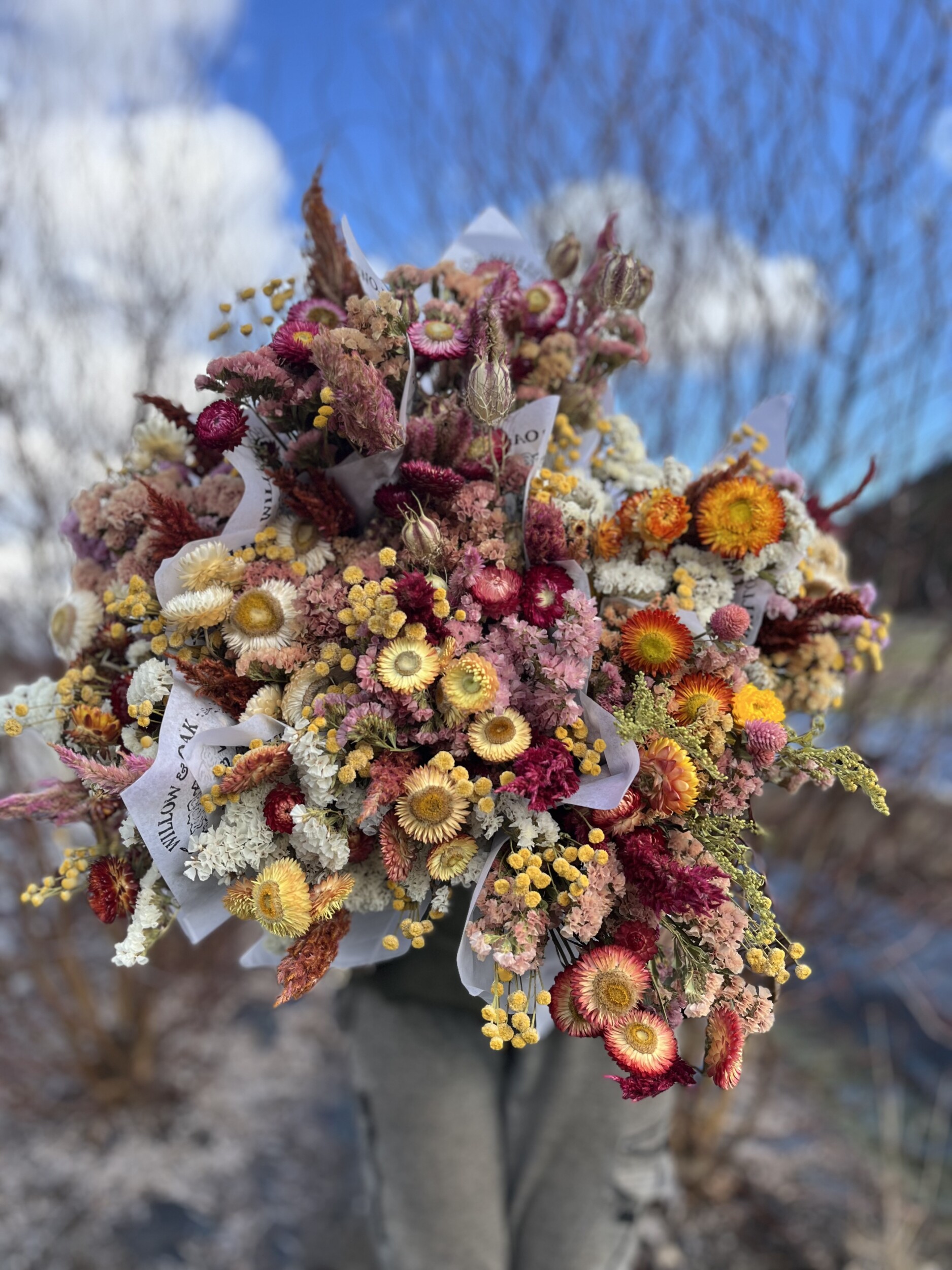 At Willow & Oak Farm, we produce sustainably-grown cut flowers and pasture-raised animals, stewarding land under conservation on the lower McKenzie River. During the winter season, find us at Holiday Market with beautiful “everlasting” dried flower creations like wreaths, bouquets, and more! You’re sure to find the perfect gift for your botanically-minded loved ones, bringing color and whimsy to the home space while supporting local regenerative agriculture.