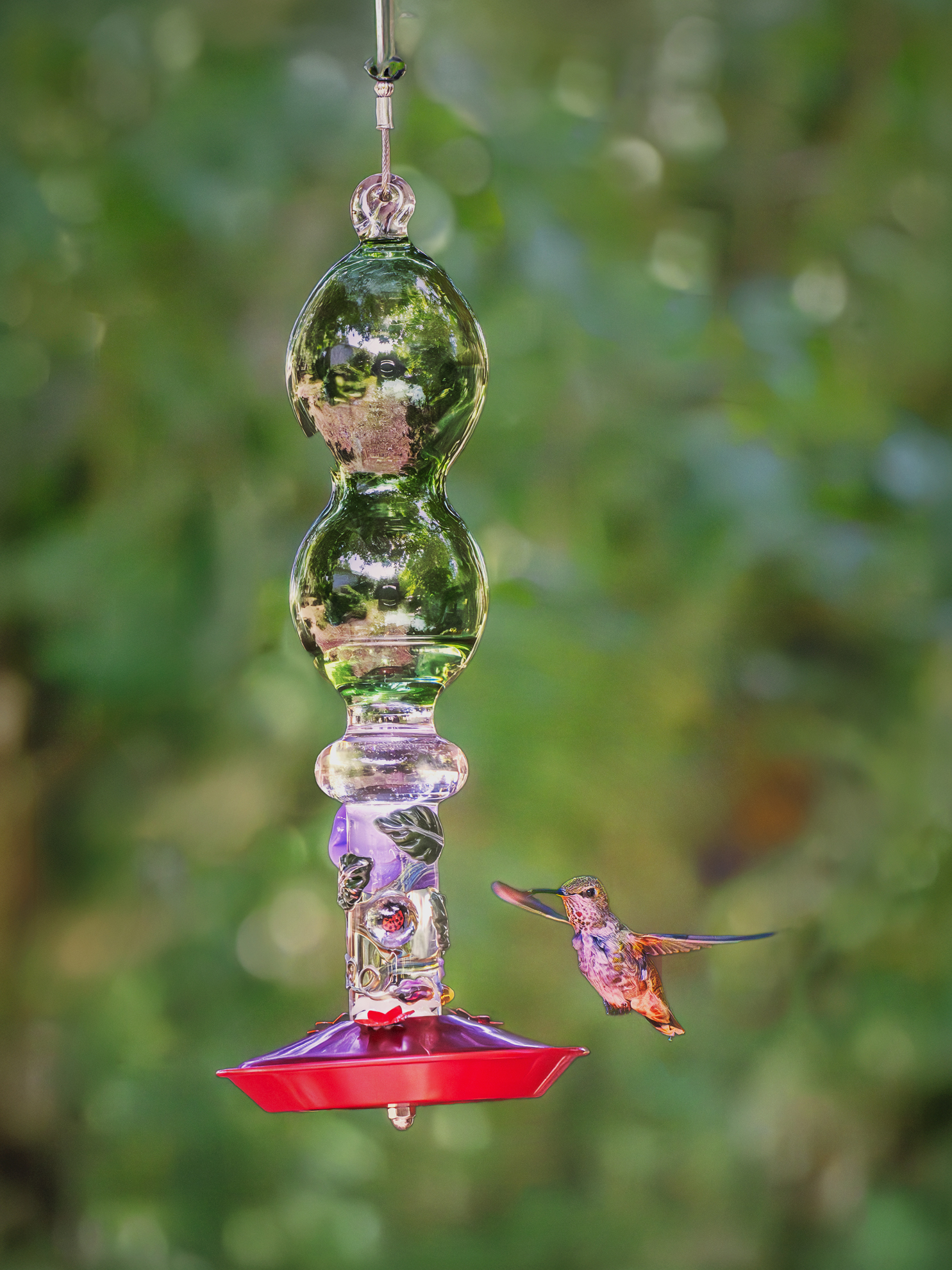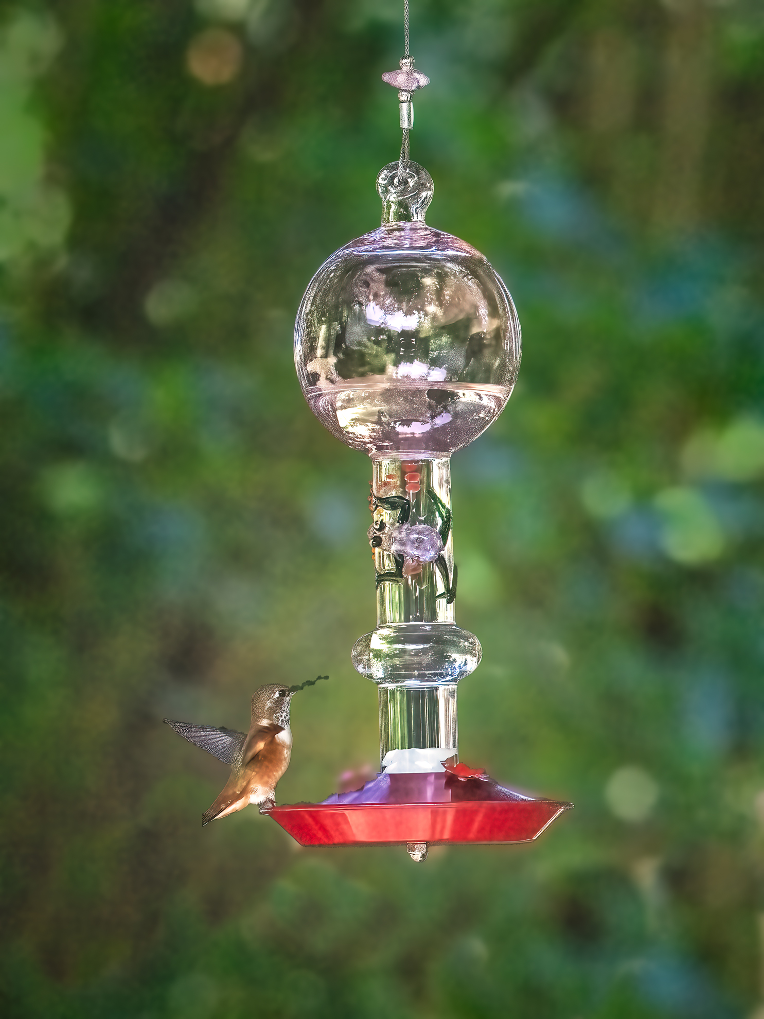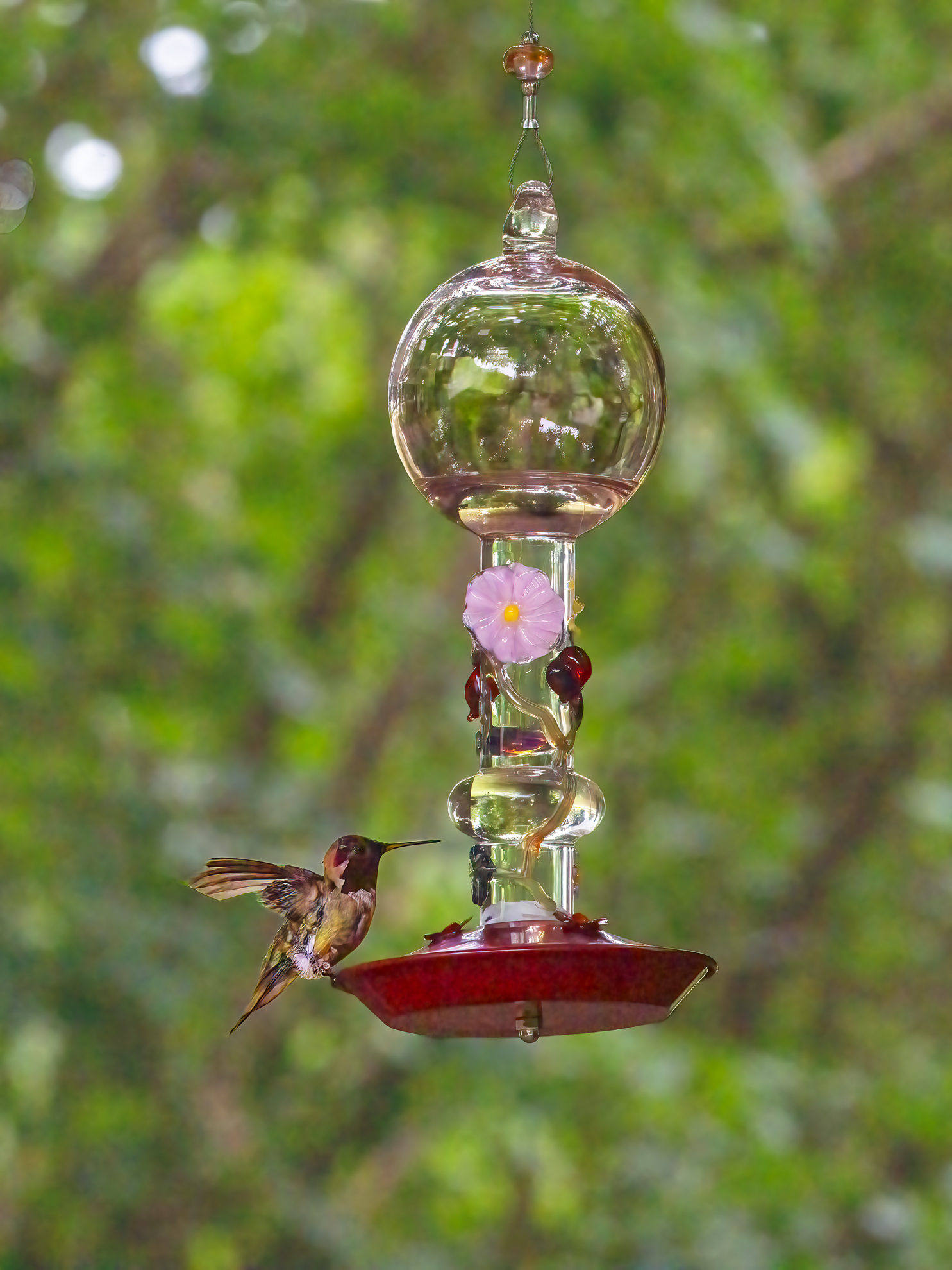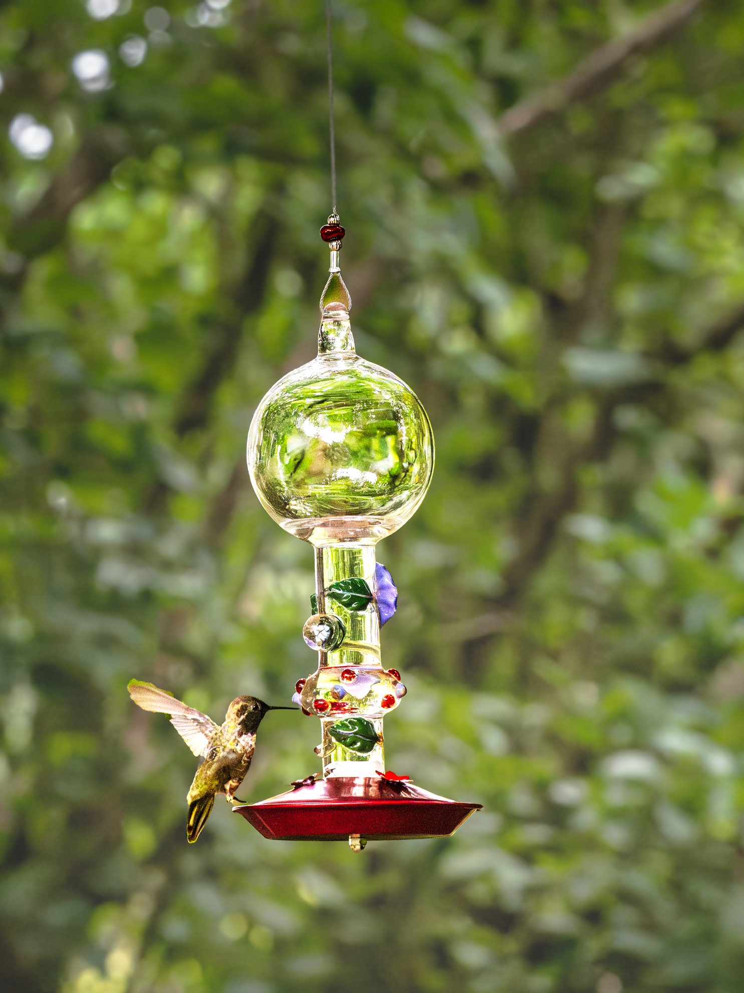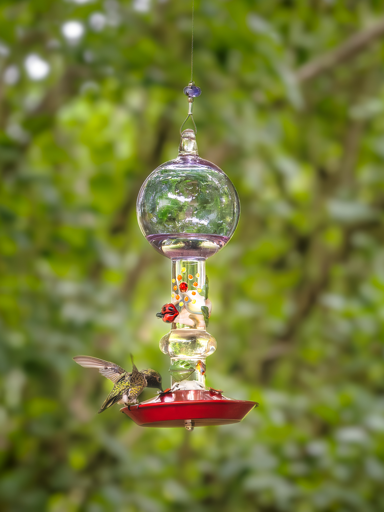 My wife and I make each one of these feeders out of borosilicate glass. We established Winship Designs, LLC for sales and use contemporary and traditional lampworking techniques. Each feeder Winship Designs, LLC creates is one-of-a-kind. They work well; we have been using them for years to feed the hummingbirds in our yard here in Eugene, OR. We also offer a line of stunning gift cards featuring photos of our feeders in use.