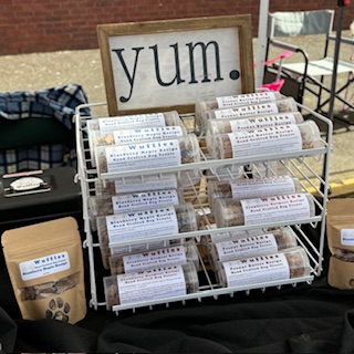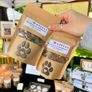 Wuffles Dog Treats uses locally sourced ingredients (whenever possible) and no preservatives. Our treats are made in small batches and contain human grade ingredients like Oregon blueberries, Bob’s Red Mill Flour, and locally sourced goat’s milk. We strive at making treats that not only taste good, but make you feel good giving Wuffles to your dogs.