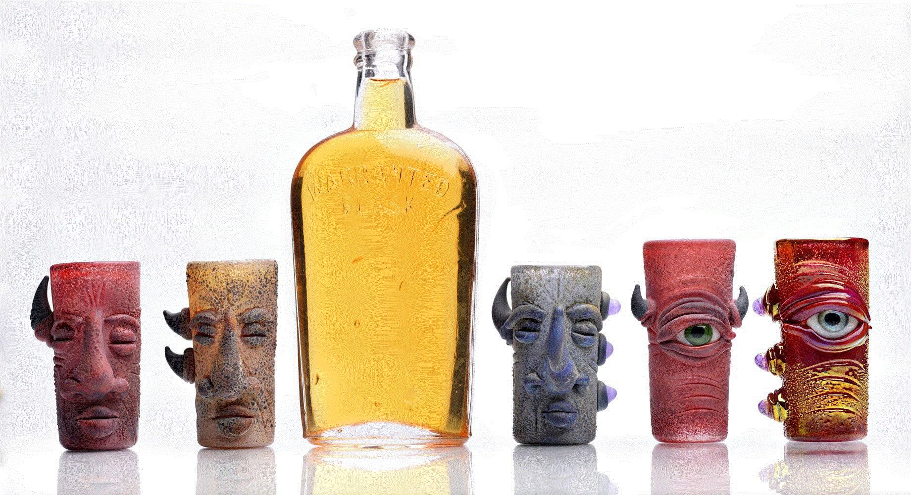 He soon engaged his family and they started Mazet Studios. They developed a line of whimsical frogs, turtles, and sea creatures, marbles, pendants and ornaments. He established his work in fine coastal galleries, began to attend trade shows, and joined the Saturday Market. His fascination with glass has led him to author, The Contemporary Shot Glass, and The American Shot Glass and the Machine. In 2017 Eli released his first DVD The American Shot Glass. In this entertaining and instructional video he demonstrates how to make the basic shot glass and three designs. In 2019, he released his first documentary film Pipetown, USA, a documentary about the glass pipe culture that started in Eugene, OR