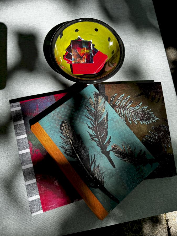 You must pick up one of my books, covered with one of a kind paper that I create,